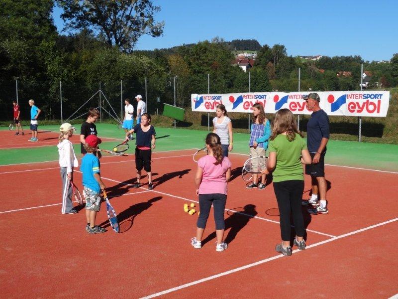 Bei traumhaftem Spätsommerwetter durften wir uns am Samstag, den 1.Oktober über zahlreichen Besuch bei unserem Tennisfest freuen. Viele Kinder und Jugendliche nützten die Gelegenheit, unter fachkundiger Anleitung durch unseren Trainer Christian richtig in den Tennis-Sport einzusteigen. Auch an erstklassiger Ausrüstung mangelte es nicht: Die Firma Sport Eybl stellte Testschläger für alle Altersklassen und Spielstärken in Top-Qualität zur Verfügung. Und von Thomas und Lucky gab es neben der fundierten Beratung in Materialfragen auch noch wertvolle Tipps zum Thema Grundschläge (bei den Damen ging es in erster Linie um die richtige Körperhaltung beim Rückhandschlag).