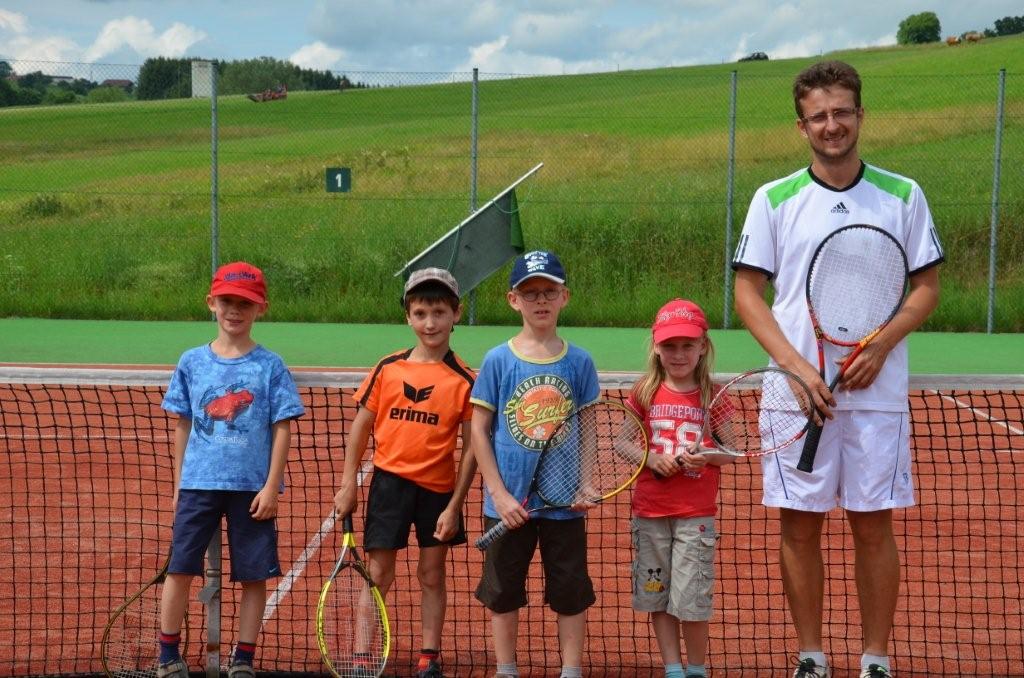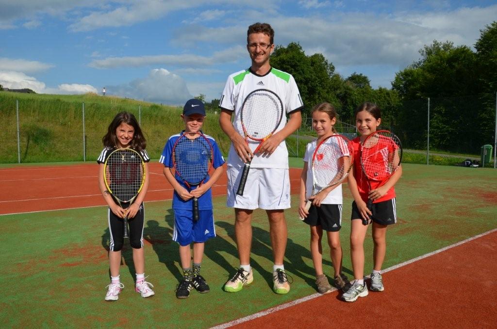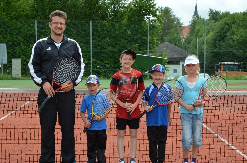 Unbeeindruckt von einem langen Schuljahr zeigten sich 16 Teilnehmer beim Auftakt unseres Kindertenniskurses. Das wusste auch der Wettergott zu würdigen – das Schlechtwetter verzog sich im Laufe des Tages. Unsere Nachwuchsspieler im Alter von 5 bis 14 Jahren hatten sichtlich Spaß an den für manche ersten Versuchen mit dem gelben Ball. Dazu trug auch unser Trainer Markus bei, bei dem wir uns auf diesem Wege herzlich bedanken möchten!
